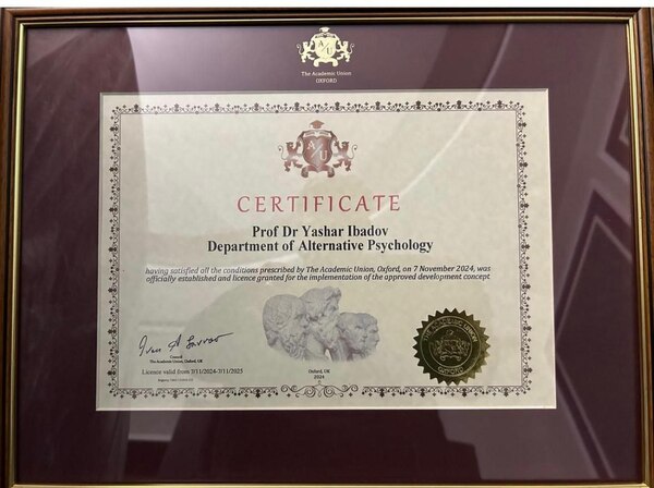 Выдан Сертификат, в котором говорится, что были соблюдены все необходимые условия, предписанные АСО. И 7 ноября 2024 года официально открыта кафедра Альтернативной психологии Яшара Ибадова и выдана лицензия для реализации утвержденной концепции развития.